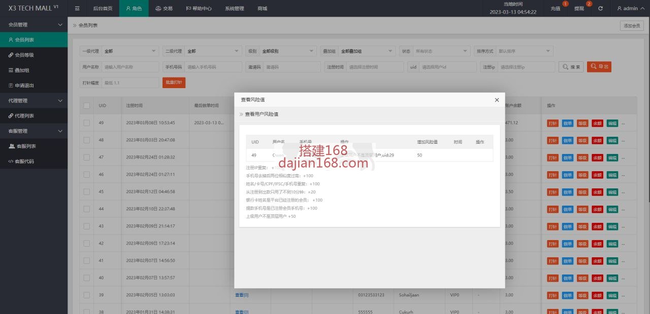 二开的海外抢单刷单系统,新增用户风险值、最后做单时间