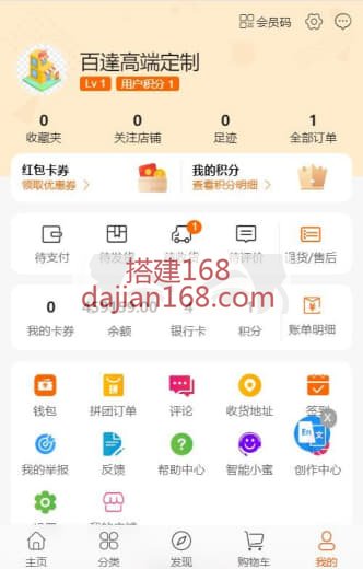 *不带一键铺货和自选商品功能,自带商品数据至少50个商品,新商户需要后台自行上传自己的宝贝,